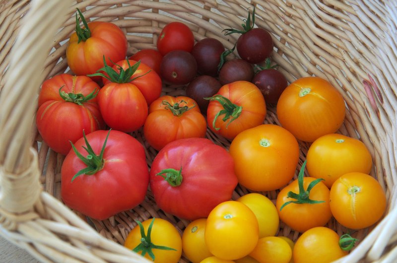 Verschiedenste Tomaten werden von den Hausgärtnerinnen Jahr um Jahr weiter gezogen. August 2012.