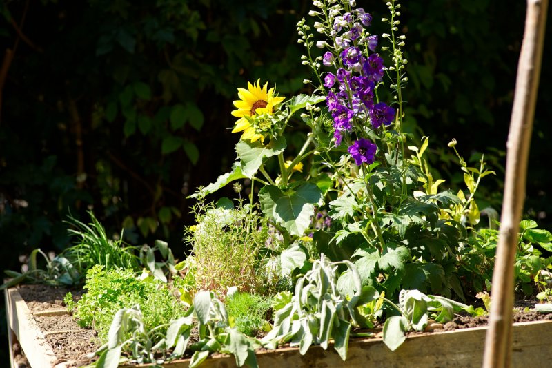 Das Hochbeet hat Anne-Christin aus Paletten gebaut. Hier ein Bild der ersten Bepflanzung. August 2012.